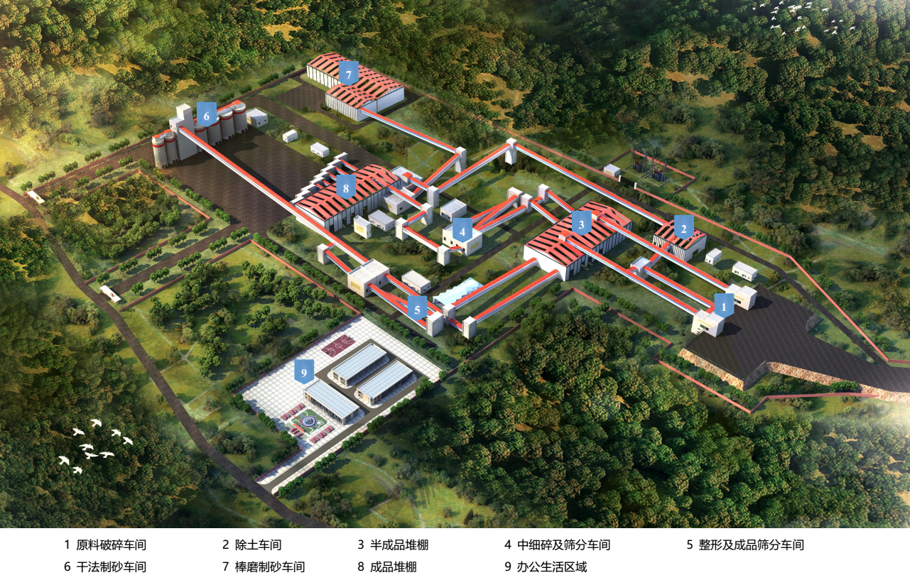 同時(shí),建筑垃圾及隧道洞渣可進(jìn)入骨料生產(chǎn)線經(jīng)過破碎、分揀、篩分等工序后成為再生建筑骨料。