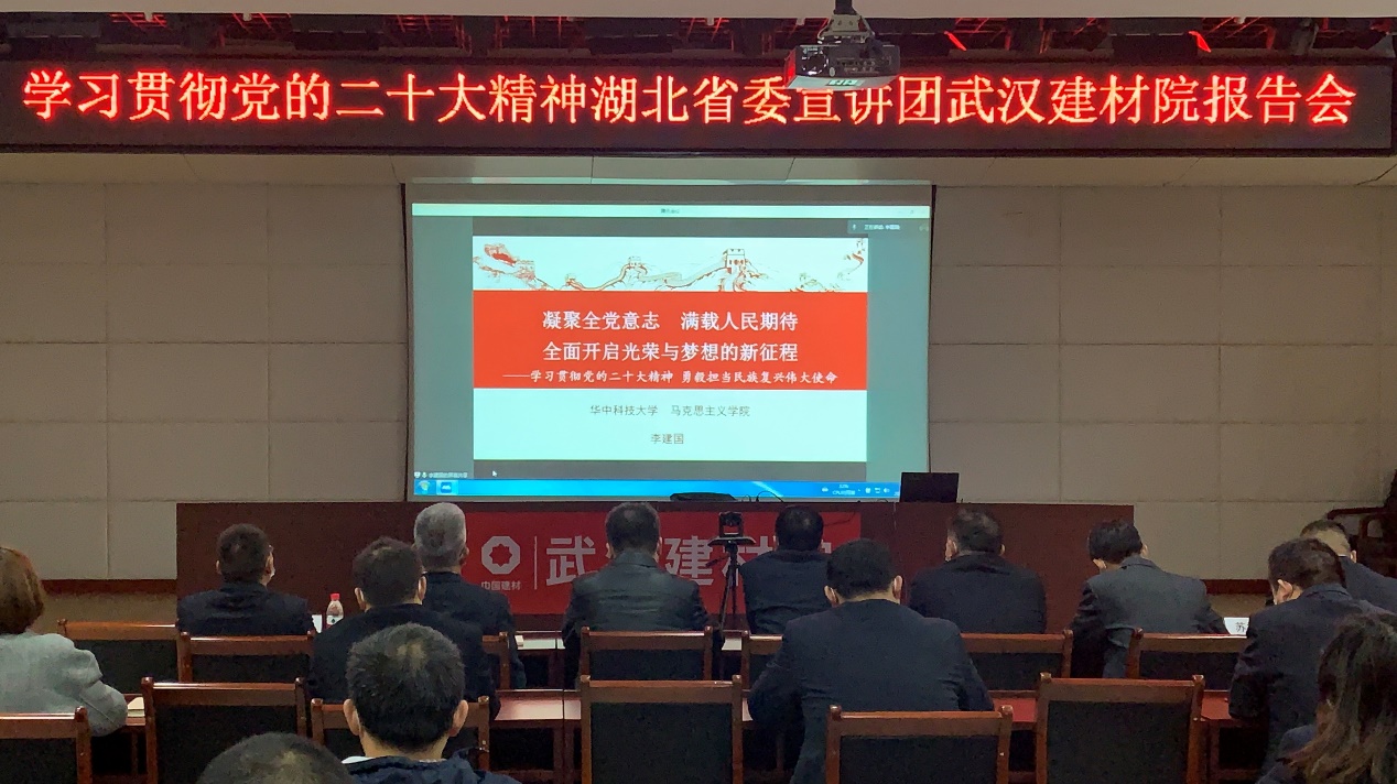11月23日上午,公司開展學(xué)習(xí)貫徹黨的二十大精神湖北省委宣講團(tuán)武漢建材院報(bào)告會(huì),由省委宣講團(tuán)成員、華中科技大學(xué)馬克思主義學(xué)院副院長(zhǎng)李建國(guó)教授就黨的二十大精神進(jìn)行宣講。