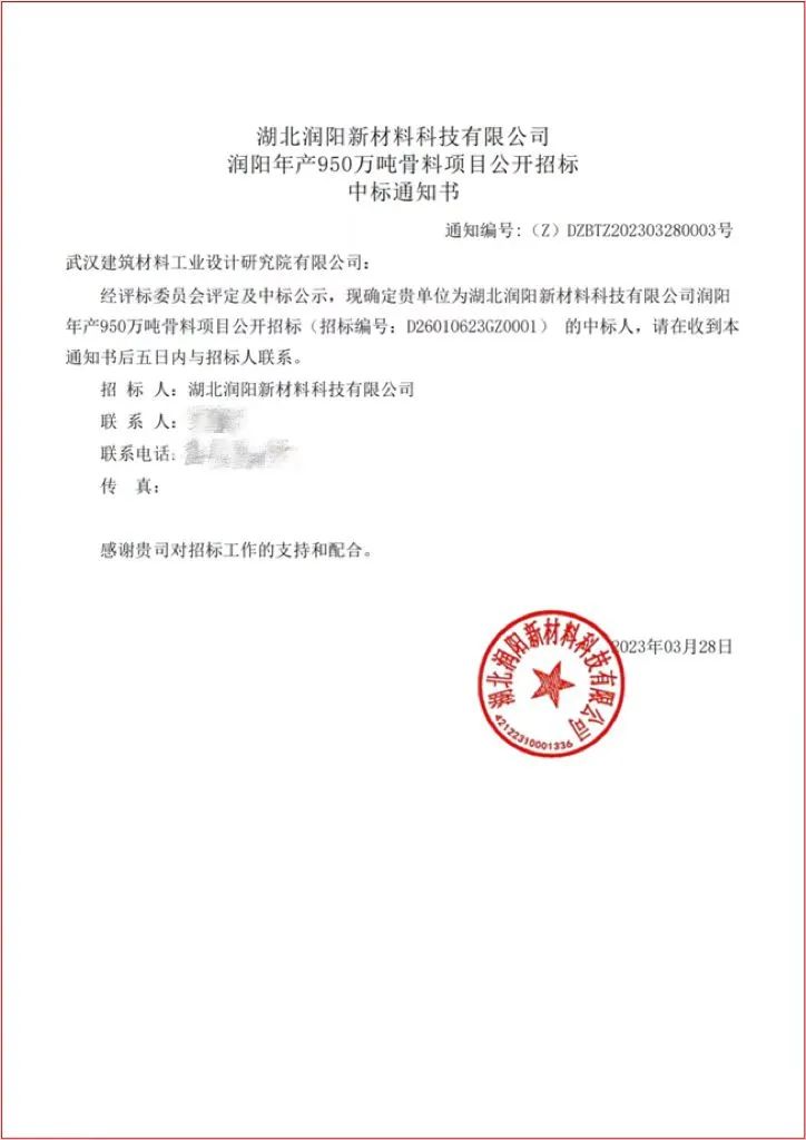近日,武漢建材院中標華潤水泥所屬湖北潤陽新材料科技有限公司潤陽年產(chǎn)950萬噸骨料總承包項目。